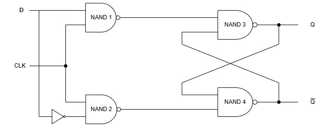 We’re not allowed to give S = 1 and R = 1 at the same time, or the latch misbehaves. So the D flip-flop solves this by adding a NOT gate.